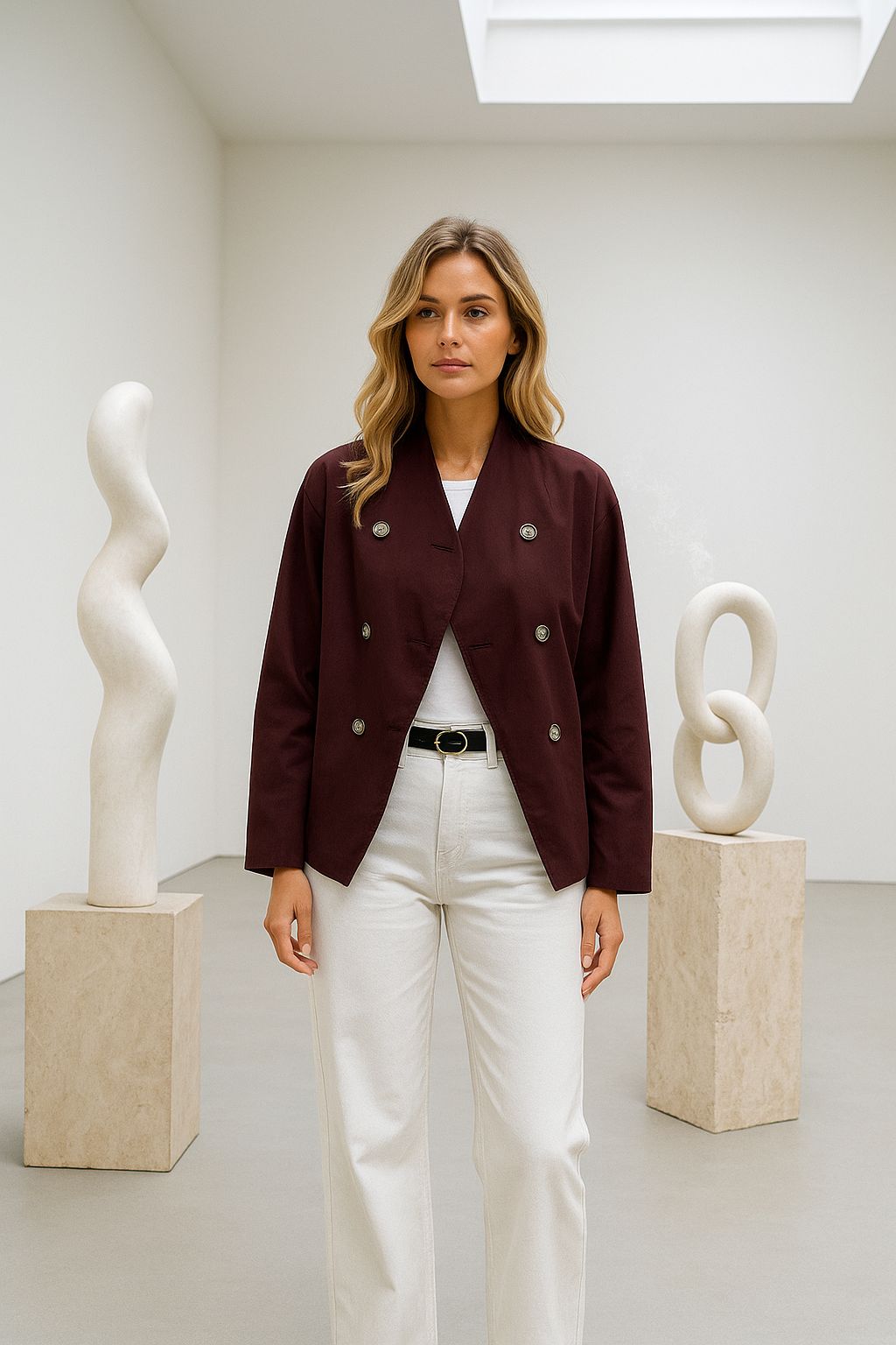 - Long sleeves and tailored silhouette