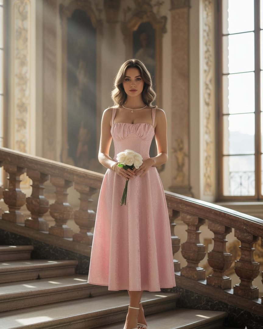 Elegant and refined, this jacquard lace dress adds a romantic touch to any occasion. The high waistline creates a flattering, elongated silhouette, while the floral lace pattern exudes timeless femininity. Crafted from durable polyester, it offers a structured yet soft feel for all-day comfort. Perfect for brunch dates, garden weddings, or special events, this dress is a go-to piece for elevated style. Pair it with delicate jewelry and heels for a polished, graceful look.